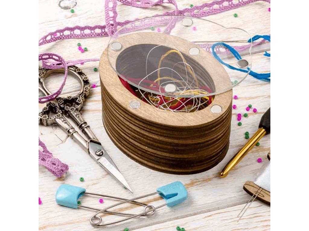 Stylová magnetická krabička na drobnosti s průhledným motivem pro bezpečné uložení nejen šicích a kreativních potřeb, ale i běžných domácích drobností. Díky silným neodymovým magnetům zůstává spolehlivě uzavřená i při přenášení.